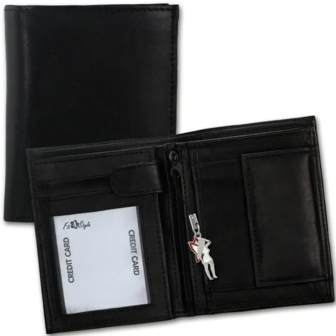 Praktische Herrengeldbörse aus Leder mit vielen Fächern für Kreditkarten, Ausweise, Geldscheine, etc. Im Lieferumfang enthalten ist ein kleiner Fee-Anhänger, der am Produkt oder auch als Handyanhänger getragen werden kann.