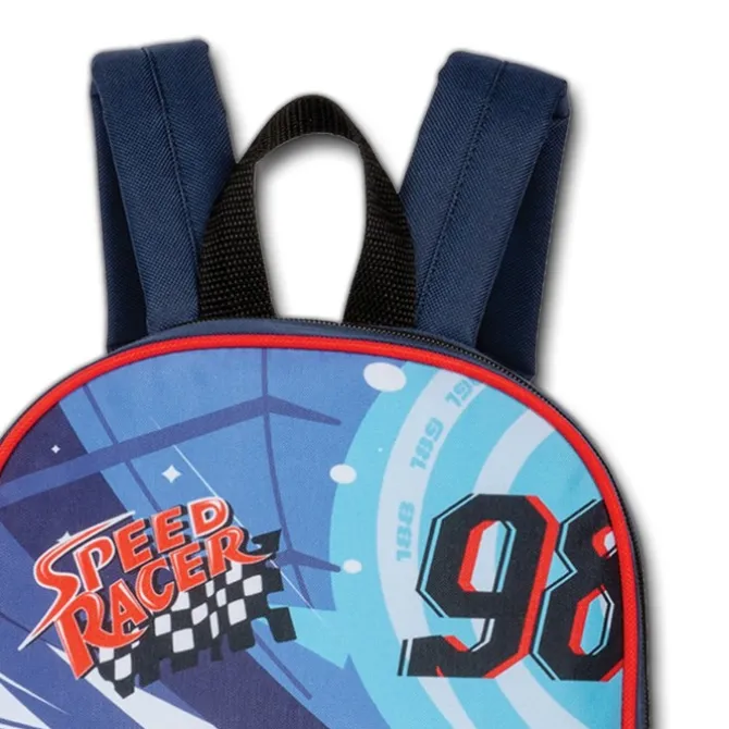 Auto-Fans aufgepasst: Dieser Kindergartenrucksack darf nicht an euch vorbeifahren! Diese Kindertasche mit dem roten Speed Racer Motiv ist genau das richtige für kleine Flitzer. Der Rucksack bietet ausreichend Stauraum für Jedermann! Ob gefüllt mit einer Brotdose für den Kindergarten oder zahlriechen Autos für das nächste Rennen – dank des Reißverschlusses ist alles sicher verstaut. Da die Schultergurte verstellbar sind, können Sie die Tasche immer auf die gewünschte Länge tragen. Die Schultergurte sind gepolstert, sodass die Tasche sehr angenehm zu tragen ist.