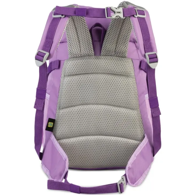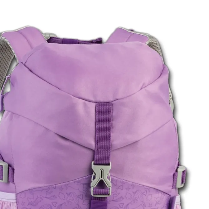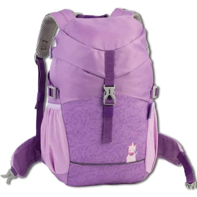 - Kurzbeschreibung: Kinderrucksack in violett mit Klippverschluss, Ziehschleife