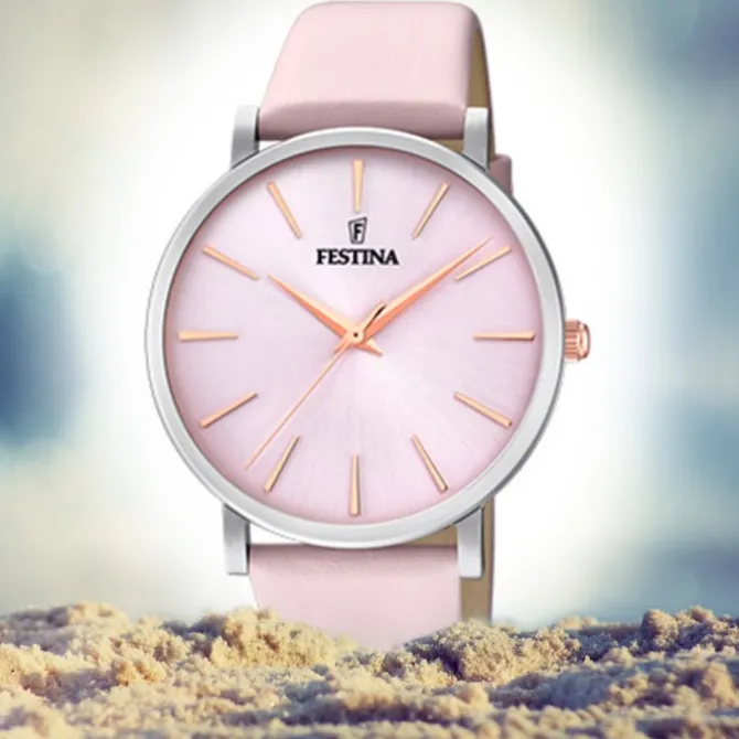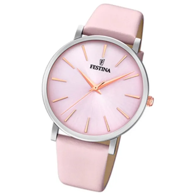 Diese elegante Uhr für Damen aus der exklusiven Festina Boyfriend-Kollektion verfügt über ein hochwertiges Leder-Armband in rose. Das analoge Quarzwerk und die Wasserdichte bis 3 bar machen diese Armbanduhr zu einem besonders zuverlässigen Begleiter.
