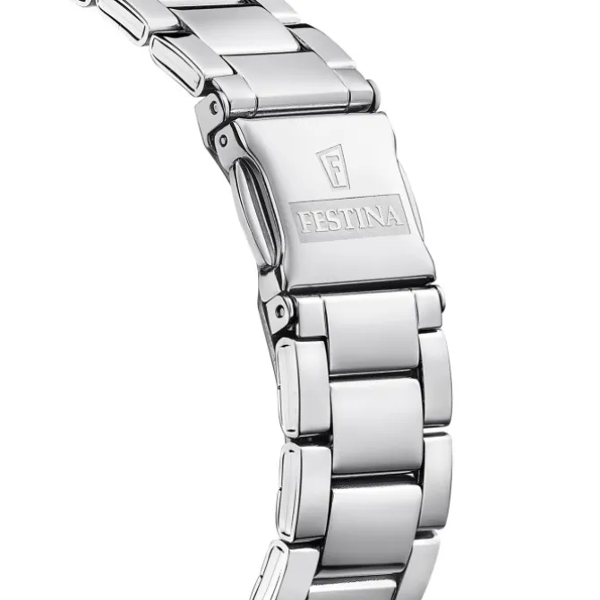 Diese einzigartige Uhr für Damen aus der aktuellen Festina Boyfriend Kollektion garantiert hohen Tragekomfort durch das hochwertige Edelstahl-Armband in silber. Die Armbanduhr mit analoger Anzeige und präzisem Armbanduhr ist ein zuverlässiger Begleiter in Alltag und Freizeit.