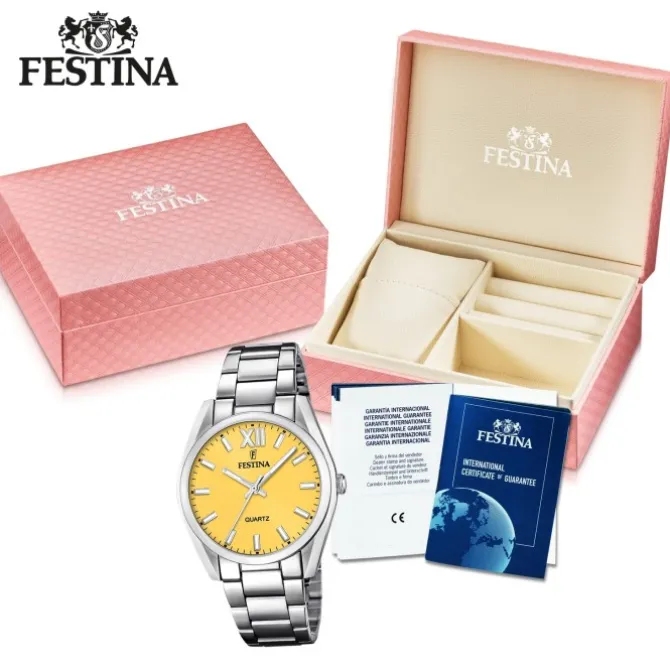 Festina, lat. -Beeil dich- seit über 100 Jahren ist dies auf Ziffernblättern zahlreicher Uhren zu finden. 1902 in der Schweiz gegründet, wurde Festina 1984 durch den Spanier Miguel Rodriguez übernommen und hat seitdem seinen Sitz in Spanien. Mit Modellen von Festina bekommen Sie Uhren in hervorragender Qualität zu fairen Preisen. Festina verwendet ausschließlich erstklassige Japanische oder Schweizer Uhrwerke.