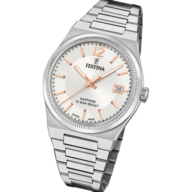 Die Kollektion -Swiss Made- von Festina sind exklusive Schweizer Uhren, die für Liebhaber von Präzision und Stil entworfen wurden. Die Uhren haben ein klassisches Design mit drei Zeigern für Damen und Herren.