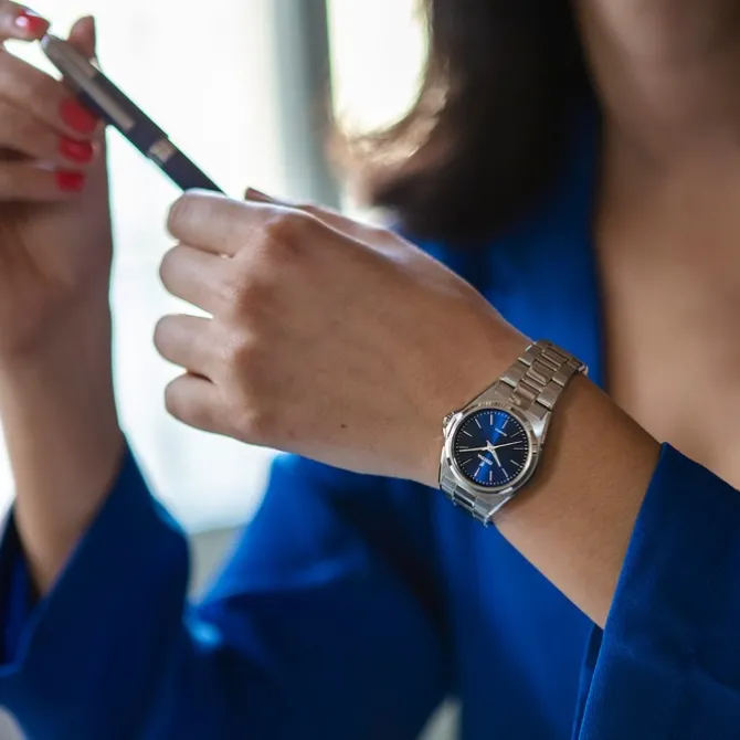 Diese einzigartige Uhr für Damen aus der aktuellen Klassik Kollektion garantiert hohen Tragekomfort durch das hochwertige Edelstahl-Armband in silber. Die Armbanduhr mit analoger Anzeige und präzisem Armbanduhr ist ein zuverlässiger Begleiter in Alltag und Freizeit.