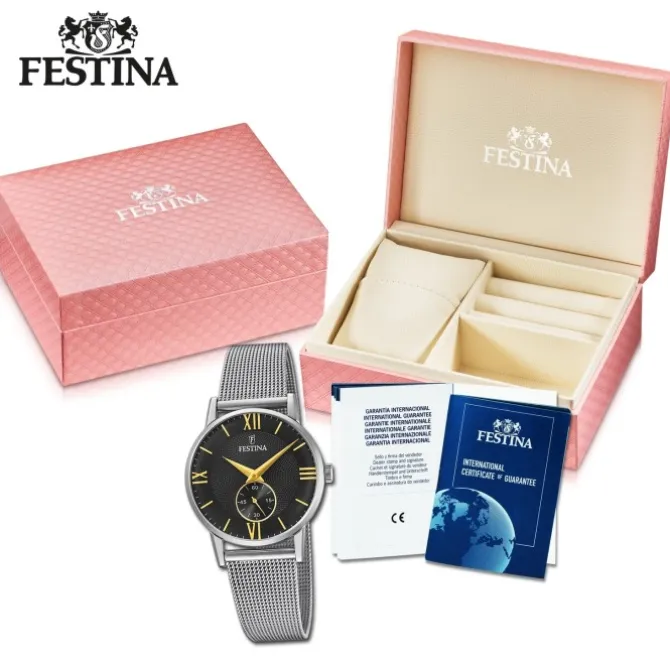 Festina, lat. -Beeil dich- seit über 100 Jahren ist dies auf Ziffernblättern zahlreicher Uhren zu finden. 1902 in der Schweiz gegründet, wurde Festina 1984 durch den Spanier Miguel Rodriguez übernommen und hat seitdem seinen Sitz in Spanien. Mit Modellen von Festina bekommen Sie Uhren in hervorragender Qualität zu fairen Preisen. Festina verwendet ausschließlich erstklassige japanische oder Schweizer Uhrwerke.