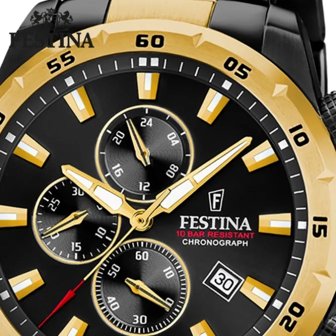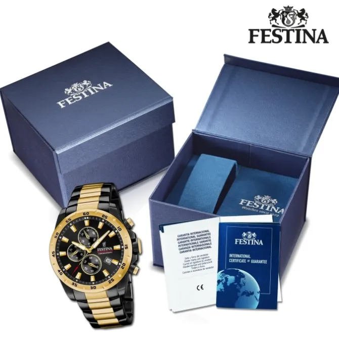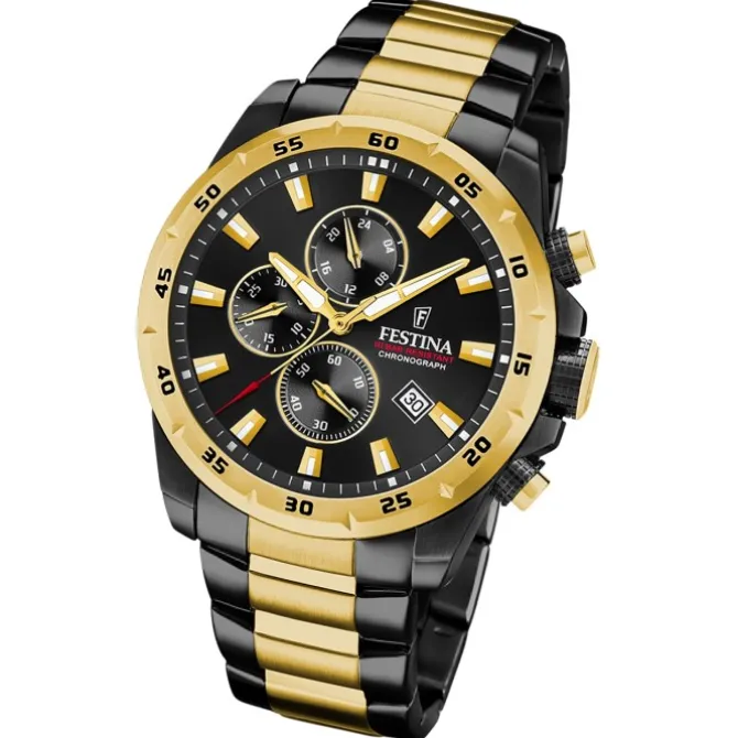 Festina Herrenuhr Chronograph Sport Armbanduhr Edelstahl schwarz gold UF20563/1