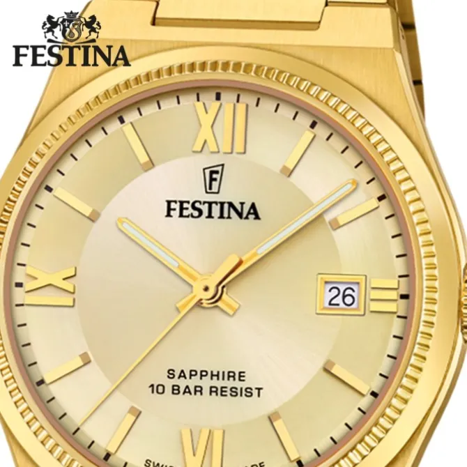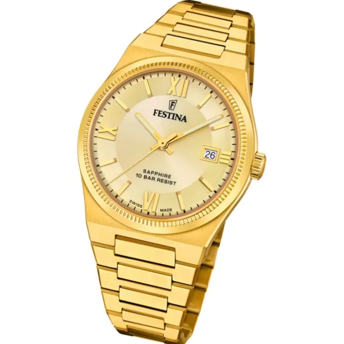 - Kurzbeschreibung: Festina Herrenuhr Edelstahl gold Festina Swiss made Armbanduhr UF20038/2