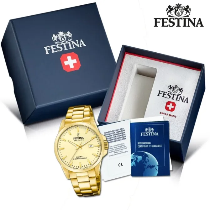 - Kurzbeschreibung: Festina Herrenuhr Edelstahl gold Festina Swiss made Armbanduhr UF20044/4