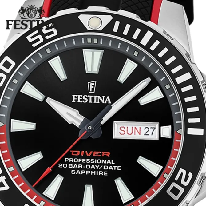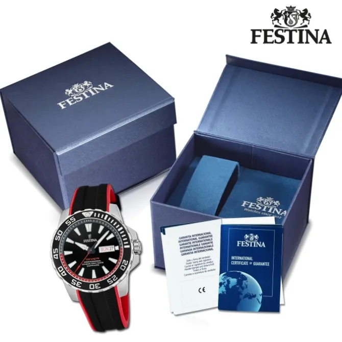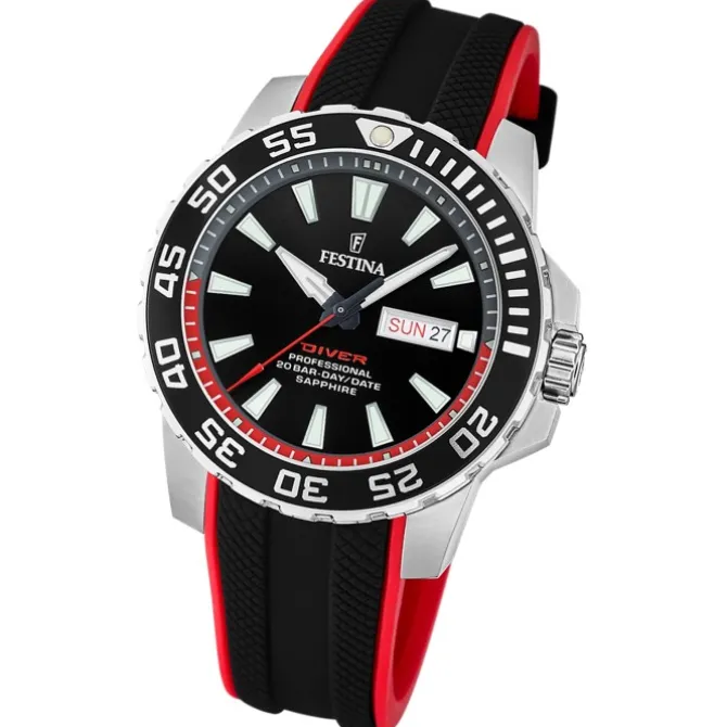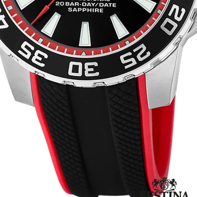 Festina Herrenuhr Kautschuk schwarz rot The Originals Armbanduhr UF20662/3