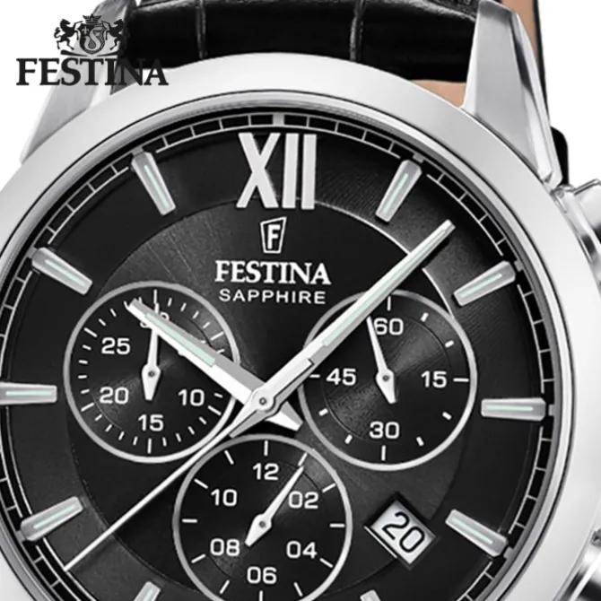 - Kurzbeschreibung: Festina Herrenuhr Leder schwarz Festina Swiss made Armbanduhr UF20041/4