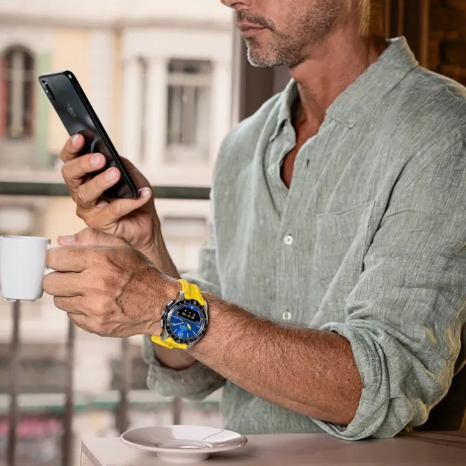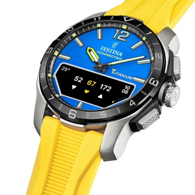 Diese einzigartige Uhr für Herren aus der aktuellen Festina Connected Kollektion garantiert hohen Tragekomfort durch das hochwertige Silikon-Armband in gelb. Die Armbanduhr mit analoger Anzeige und präzisem Armbanduhr ist ein zuverlässiger Begleiter in Alltag und Freizeit.