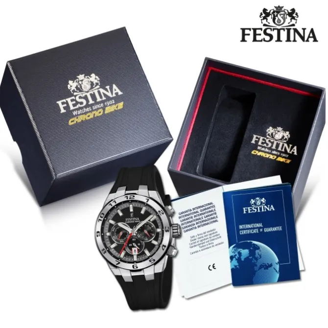 Festina, lat. -Beeil dich- seit über 100 Jahren ist dies auf Ziffernblättern zahlreicher Uhren zu finden. 1902 in der Schweiz gegründet, wurde Festina 1984 durch den Spanier Miguel Rodriguez übernommen und hat seitdem seinen Sitz in Spanien. Mit Modellen von Festina bekommen Sie Uhren in hervorragender Qualität zu fairen Preisen. Festina verwendet ausschließlich erstklassige Japanische oder Schweizer Uhrwerke.