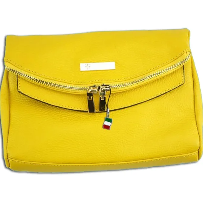 Schultertasche, Clutch Leder Damen gelb Florence