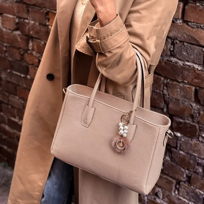 - Besonderheiten: Hauptfach mit Reißverschluss, goldfarbene Metallbeschläge