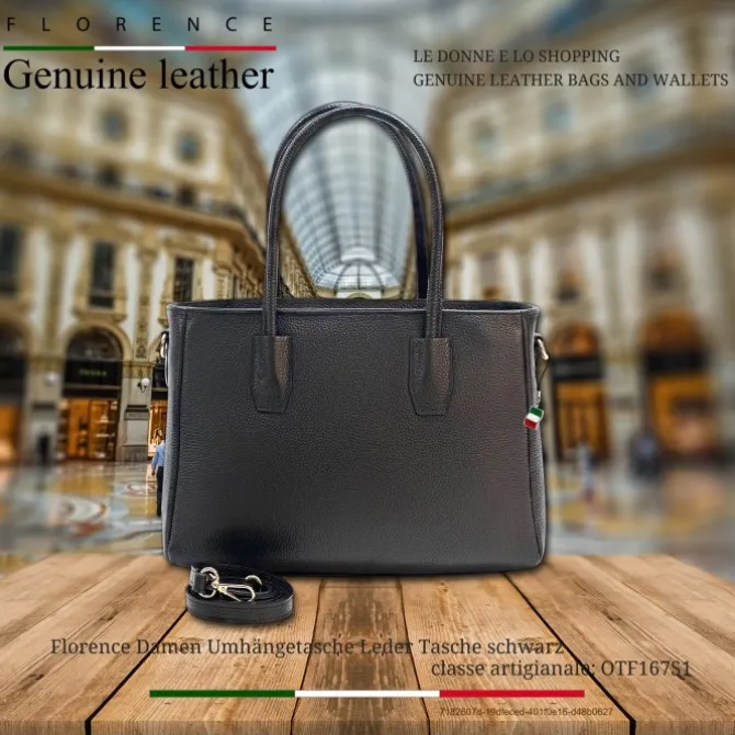 Ein absolutes Highlight ist diese Leder Schultertasche von Florence. Eine Must-Have-Tasche aus Echtes Leder in schwarz. Größe: mittel 35x25x15cm