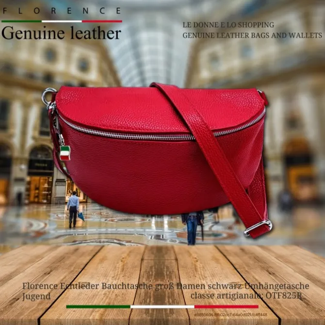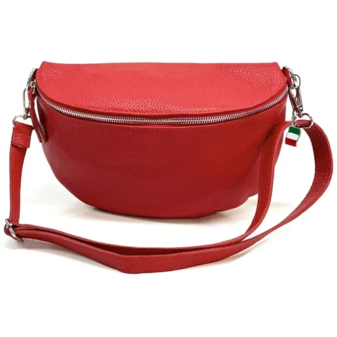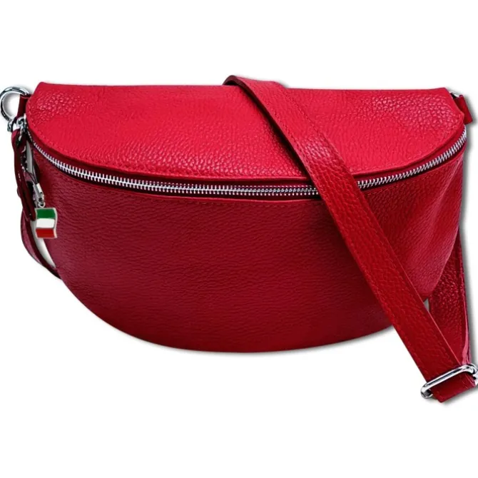 Große Bauchtasche Leder rot Damen, Jugend Gürteltasche, Umhängetasche – Florence