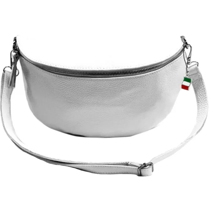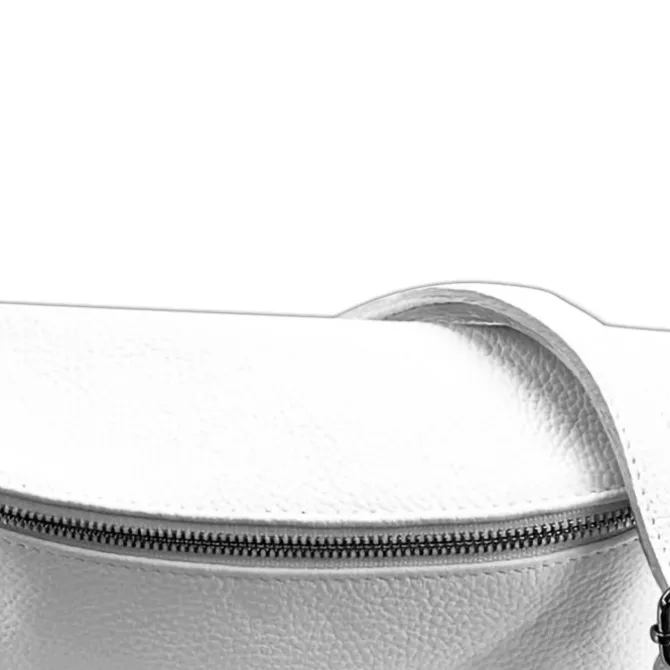 Große Bauchtasche Leder weiß Damen, Jugend Gürteltasche, Umhängetasche – Florence