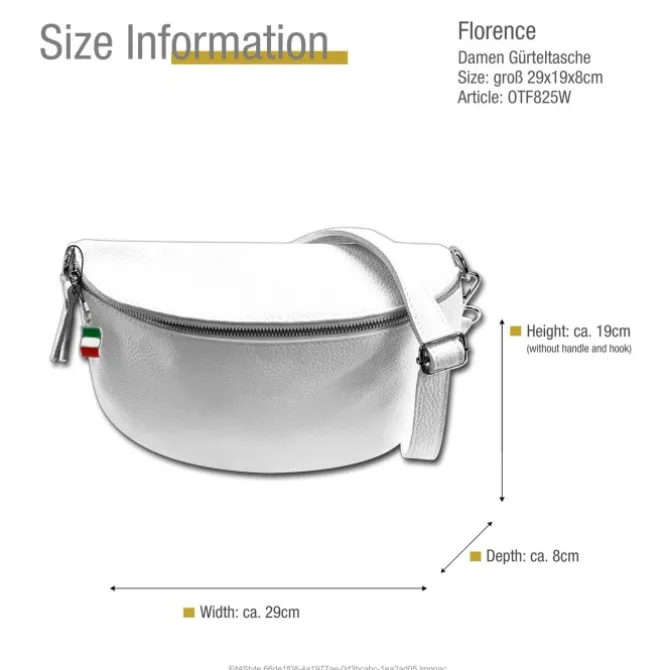 Achtung: Der Gurt kommt immer in der passenden Farbe zum Leder! Im Lieferumfang enthalten ist ein kleiner Italienflaggen-Anhänger, der am Produkt oder auch als Handyanhänger getragen werden kann.