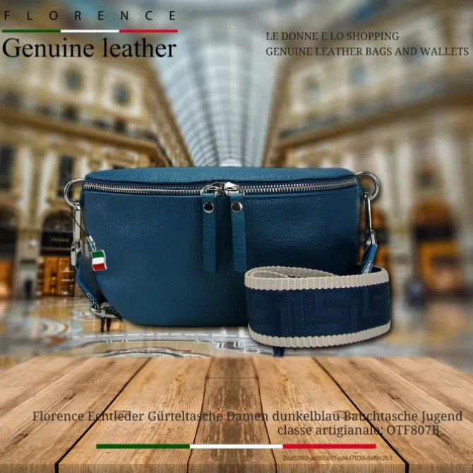 Gürteltasche Leder dunkelblau Damen, Jugend Bauchtasche – Florence