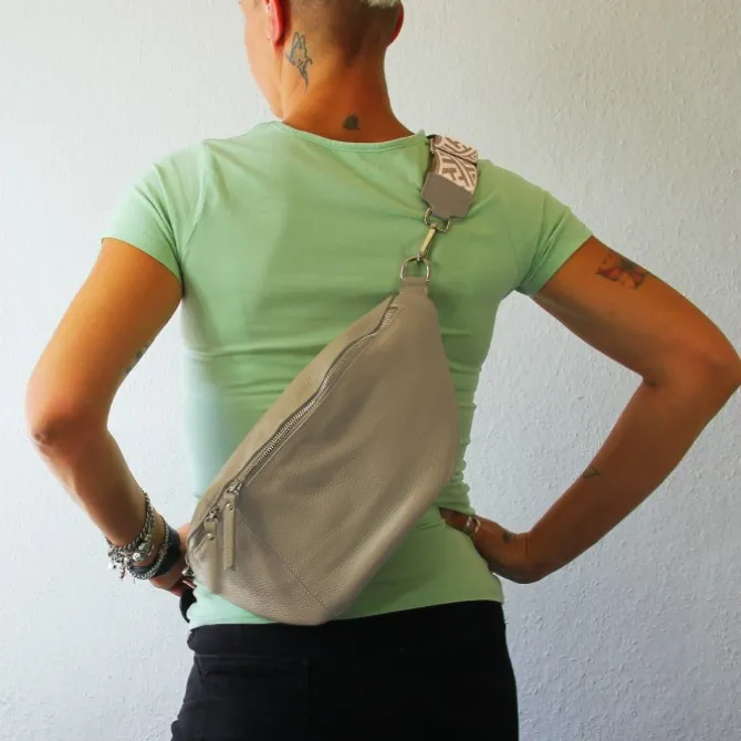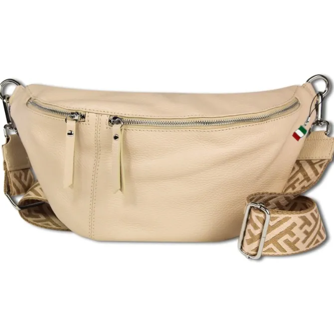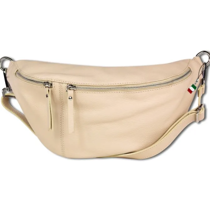 Große Gürteltasche Leder beige Damen, Jugend Bauchtasche inklusive 2 Gurte – Florence