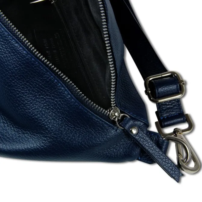 Große Gürteltasche Leder dunkelblau Damen, Jugend Bauchtasche – Florence
