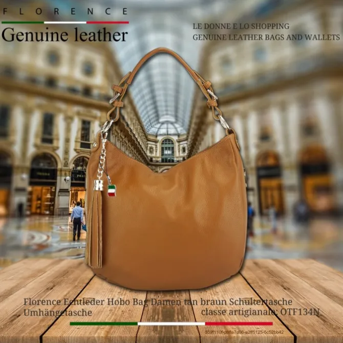 Schultertasche Leder tan Damen Hobo Bag Tasche – Florence