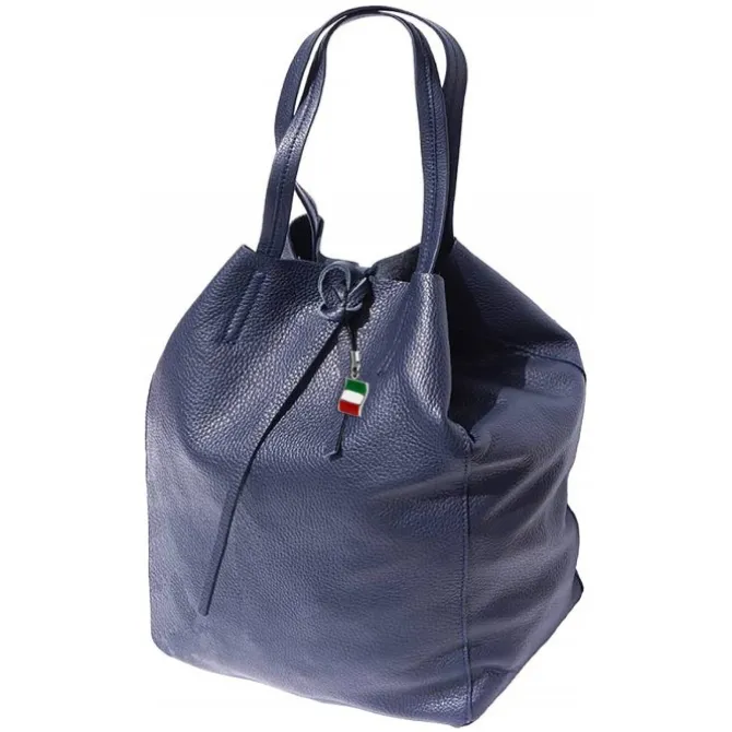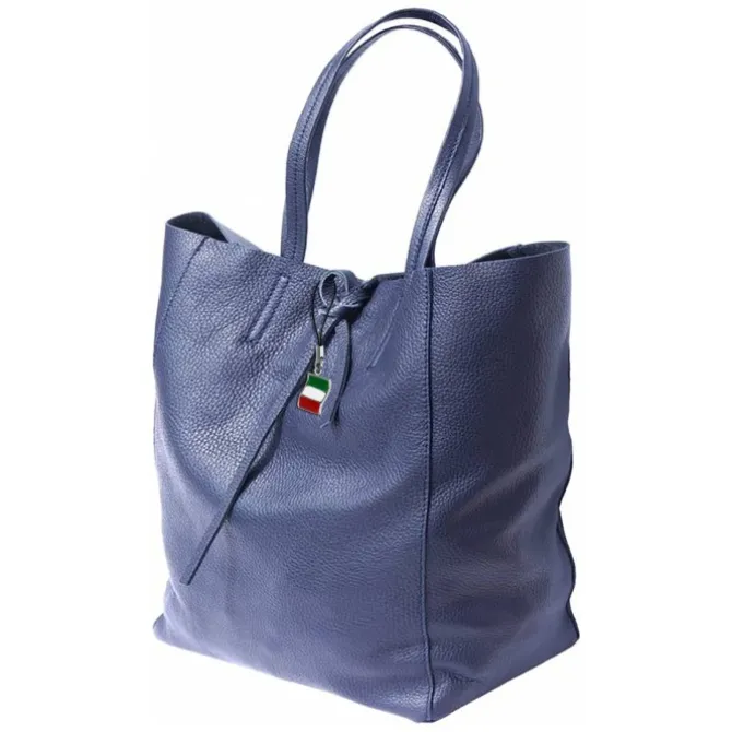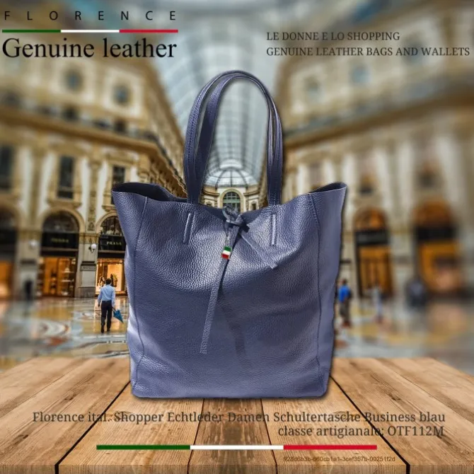 Shopper, Schultertasche Leder Damen blau Florence