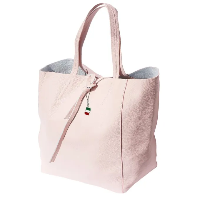 Trendiger Shopper aus echtem, weichem Leder kann durch den kurzen Riemen bequem an der Hand getragen werden oder lässig über der Schulter hängen. Für Kleinigkeiten hat sie innen eine fest angebrachte Reißschlusstasche. Diese moderne und geräumige Schultertasche ist unerlässlich im Businessalltag und in der Freizeit. Im Lieferumfang enthalten ist ein kleiner Italien-Anhänger, der am Produkt oder auch als Handyanhänger getragen werden kann.
