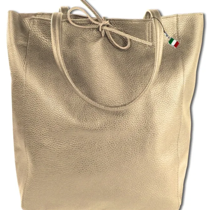 Trendiger Shopper aus echtem, weichem Leder kann durch den kurzen Riemen bequem an der Hand getragen werden oder lässig über der Schulter hängen. Die Tasche kann mit einem Reißverschluss und einem Schnürverschluss verschlossen werden. Für Kleinigkeiten hat sie innen eine fest angebrachte Reißschlusstasche. Diese moderne und geräumige Schultertasche ist unerlässlich im Businessalltag und in der Freizeit. Im Lieferumfang enthalten ist ein kleiner Italien-Anhänger, der am Produkt oder auch als Handyanhänger getragen werden kann.