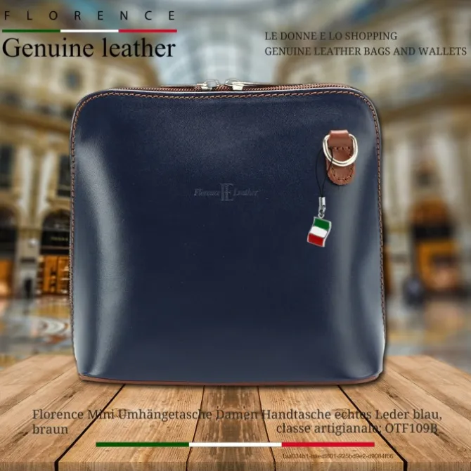Umhängetasche Leder blau, braun Damen Handtasche – Florence