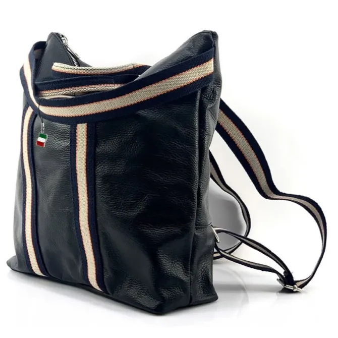 Moderne Damenrucksack aus echtem, weichem Kalbsleder – Made in Italy. Dieser Rucksack lässt sich auch als Schultertasche oder an den 2 Henkeln lässig in der Hand tragen. Der Cityrucksack ist unerlässlich im Businessalltag und in der Freizeit. Er hat Platz für alles Wesentliche, es passt auch ein Laptop rein. Im Lieferumfang enthalten ist ein kleiner Italien-Anhänger, der am Produkt oder auch als Handyanhänger getragen werden kann.