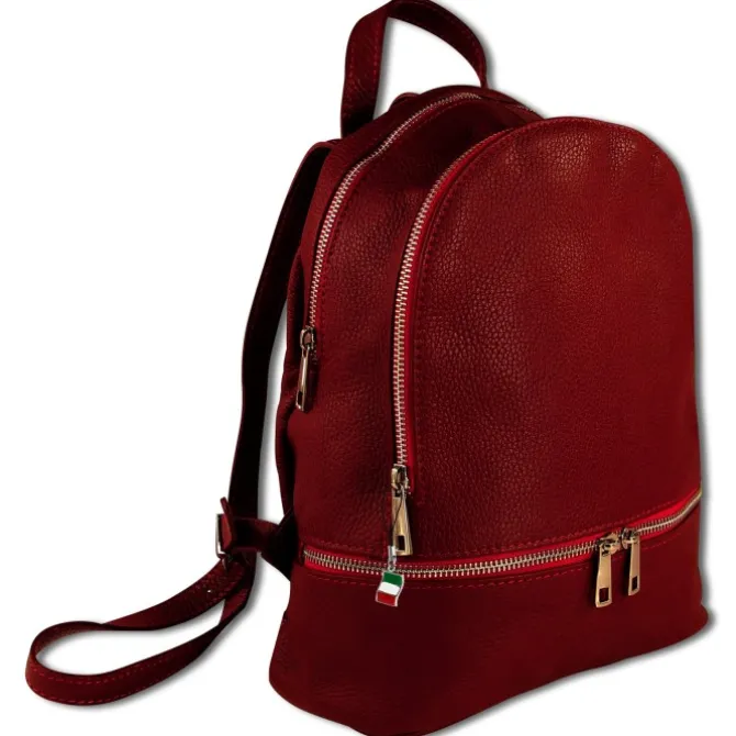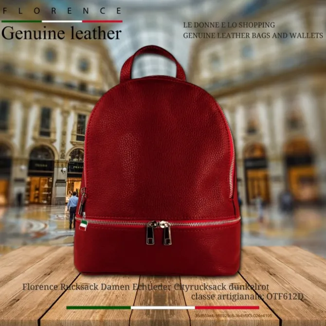 Cityrucksack Echt-Leder Damen dunkelrot Florence