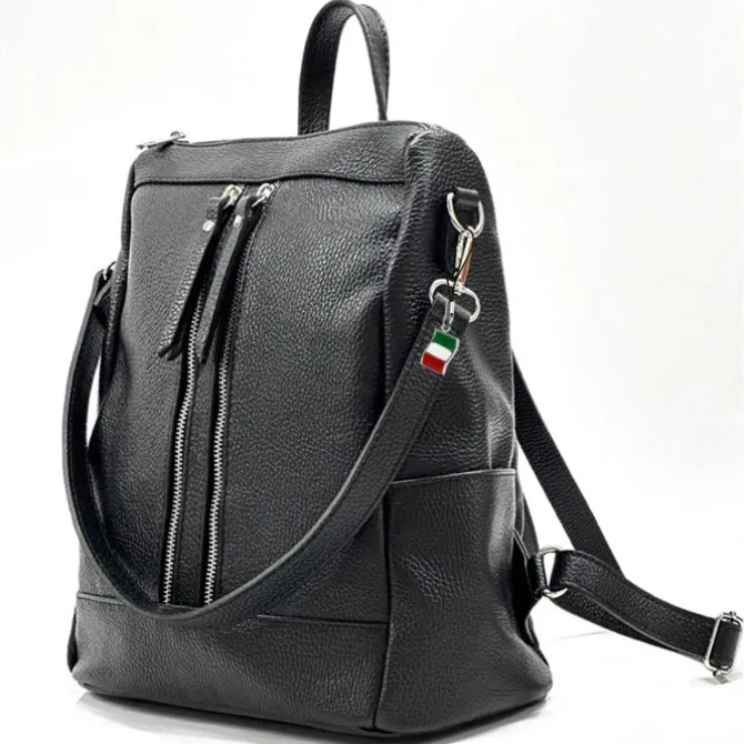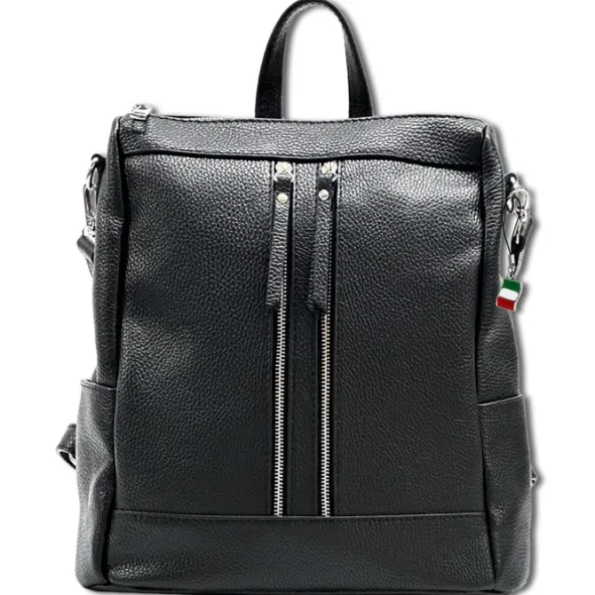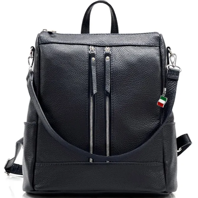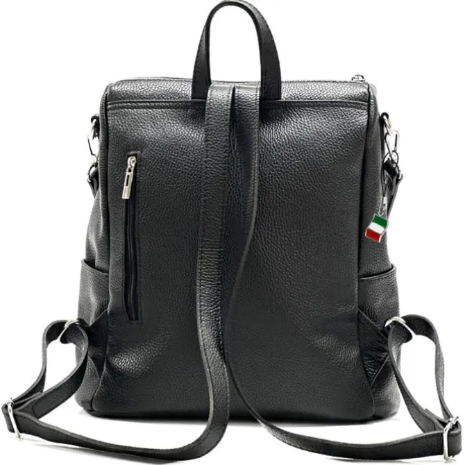 Moderner Damenrucksack aus echtem, weichem Kalbsleder – Made in Italy. Dieser funktionelle Rucksack hat Platz für alles Wesentliche und ist ideal für die Stadt und Freizeit geeignet. In den vielen Taschen kann man seine Utensilien gut und übersichtlich verstauen. Das Design des Multifunktions-Rucksack ist sportlich und funktionell. Im Lieferumfang enthalten ist ein kleiner Italien-Anhänger, der am Produkt oder auch als Handyanhänger getragen werden kann.