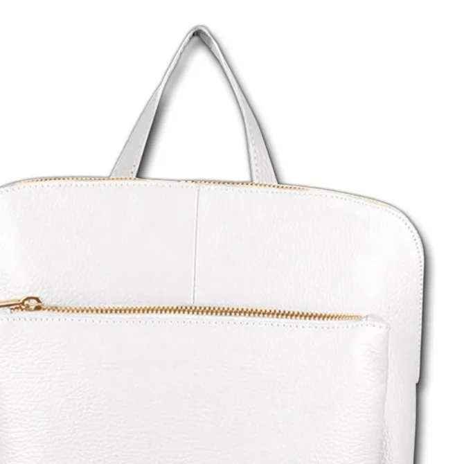 - Kurzbeschreibung: Cityrucksack in weiß mit Reißverschluss aus Echt-Leder