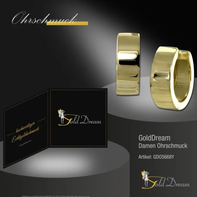 Ohrschmuck von GoldDream Goldschmuck ist hochwertiger und moderner goldener Echtschmuck. Somit bieten die Ohrringe für jede Frau angenehmen Tragekomfort.