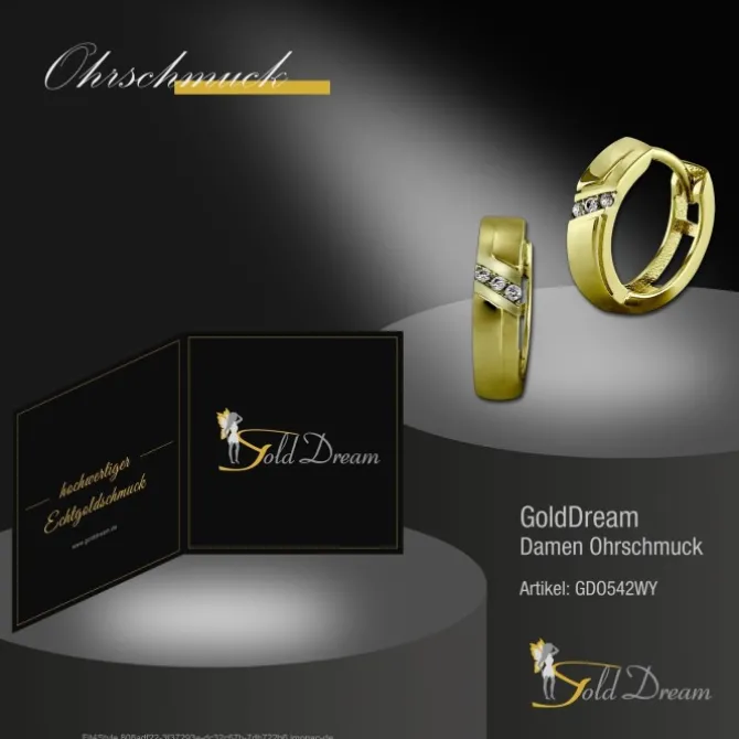 Ohrschmuck von GoldDream Goldschmuck ist hochwertiger und moderner goldener Echtschmuck. Somit bieten die Ohrringe für jede Frau angenehmen Tragekomfort.