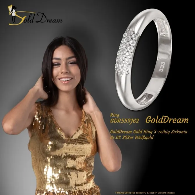 - Kurzbeschreibung: GoldDream Goldring dreireihig Zirkonia 333er Weißgold