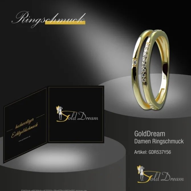 Ringschmuck von GoldDream bietet hochwertige, moderne Modelle aus goldenem Echtschmuck. Somit stehen die Ringe für einen hohen Qualitätsanspruch und optimalen Tragekomfort.