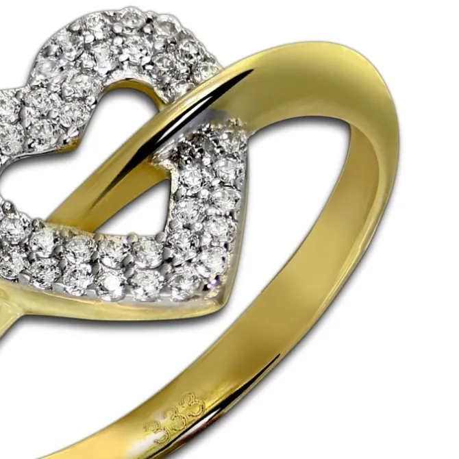 Ein edler Goldring – Herz – aus unserer einzigartigen GoldDream Echtschmuck Kollektion. Das Herz ist zweireihig mit funkelnden Zirkonia besetzt. Der Ring ist aus anlaufgeschütztem 333er Gelbgold (8-Karat) und hat eine Größe von 58mm Umfang und einen Innendurchmesser von 18,5mm. Es gibt den Goldring auch in den Größen 54, 56 und 60.
