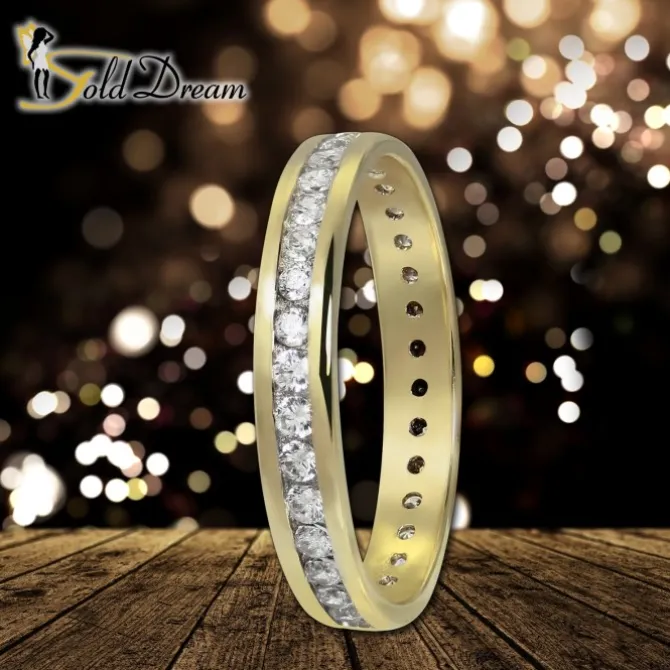 Ein edler Goldring runderherum mit Zirkonia weiß aus unserer einzigartigen GoldDream Echtschmuck Kollektion. Der Zirkonia-Ring ist aus anlaufgeschütztem 333er Gelbgold (8-Karat). Der Ring hat eine Größe von 58mm Umfang und einen Innendurchmesser von 18,5mm. Es gibt den Goldring auch in den Größen 54, 56 und 60.