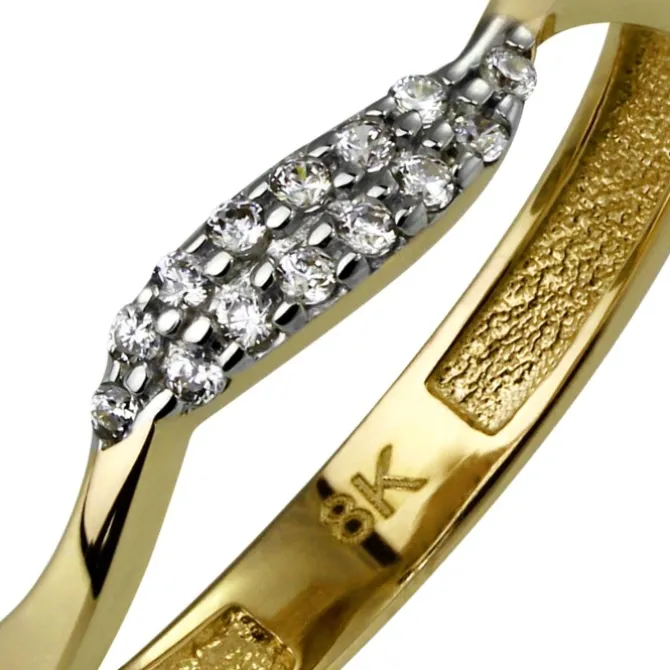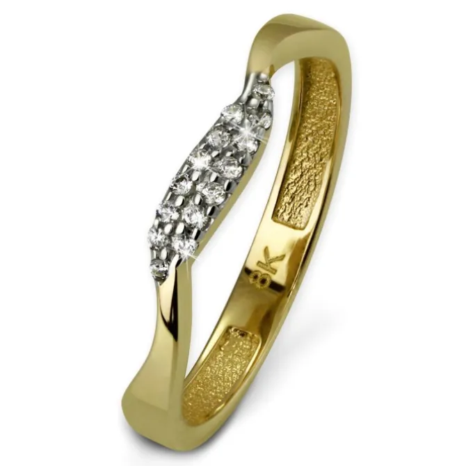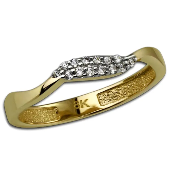 Ein edler Goldring Welle Zirkonia weiß aus unserer einzigartigen GoldDream Echtschmuck Kollektion. Der Zirkonia-Ring ist aus anlaufgeschütztem 333er Gelbgold (8-Karat) und die Welle ist verziert mit kleinen weißen Zirkonias. Der Ring hat eine Größe von 56mm Umfang und einen Innendurchmesser von 17,8mm. Es gibt den Goldring auch in den Größen 54, 58 und 60.