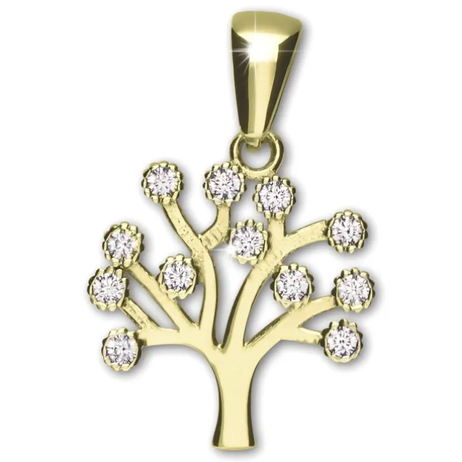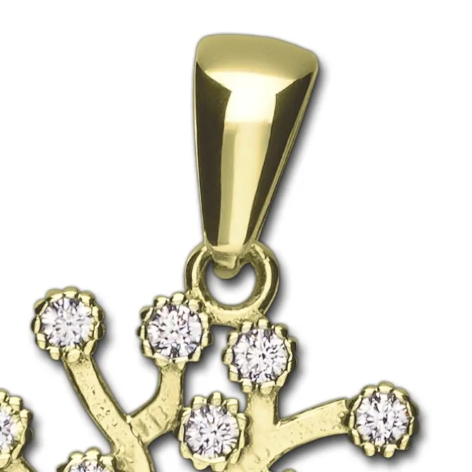 Ein Kettenanhänger – Lebensbaum – mit vielen kleinen weißen Zirkonias. Die Zirkonias funkeln am Ende der Zweige im klaren weiß. Der Gold-Anhänger ist aus unserer einzigartigen GoldDream Echtschmuck Kollektion aus 333er Gelbgold.