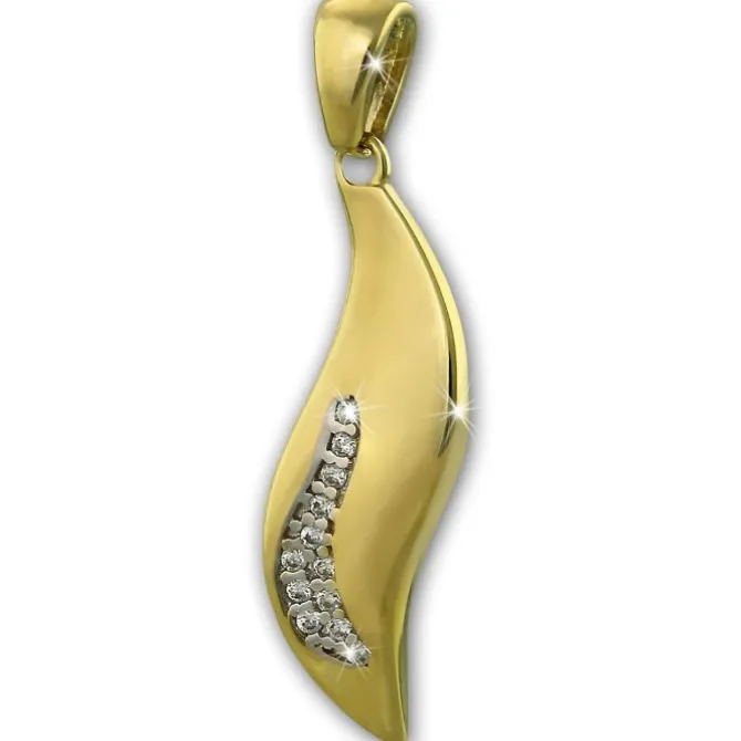 Ein Kettenanhänger – Welle – mit vielen kleinen weißen Zirkonias. Der Gold-Anhänger ist aus unserer einzigartigen GoldDream Echtschmuck Kollektion aus 333er Gelbgold.