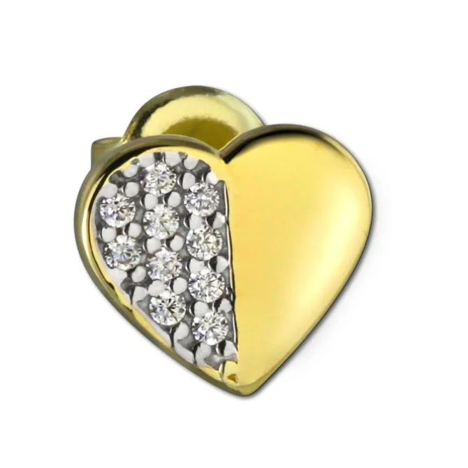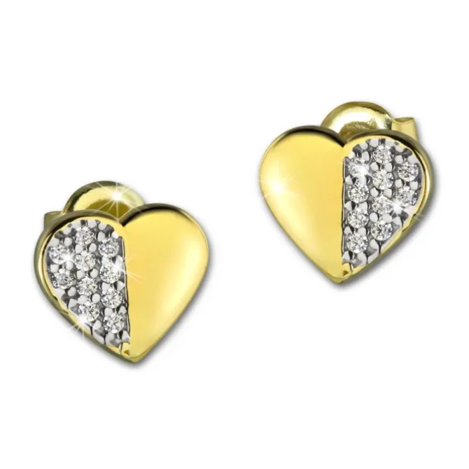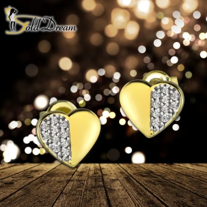 Ein Paar Ohrringe – Ohrstecker Herz – teilweise mit kleinen weißen Zirkonia besetzt. Die Größe der 8 Karat Ohrringe beträgt ca. 9mm. Die Ohrstecker sind aus unserer einzigartigen GoldDream Echtschmuck Kollektion aus 333er Gelbgold.