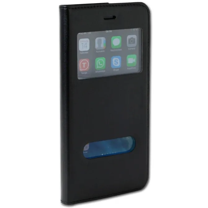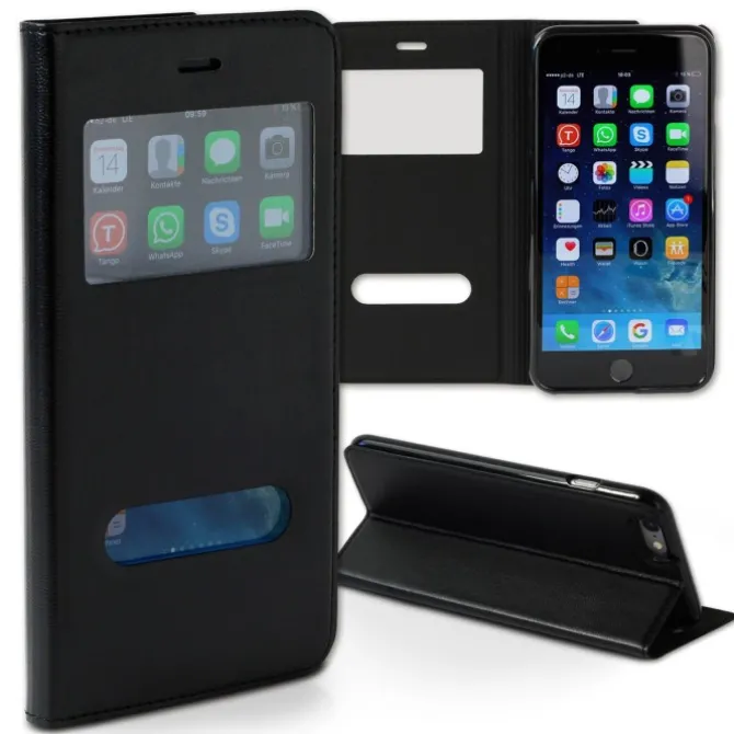 Handytasche, Schutzhülle aus Kunstleder im Bookstyle mit Infofenster, Standfunktion und integrierter PU Hülle für iPhone 6 (S) Plus.