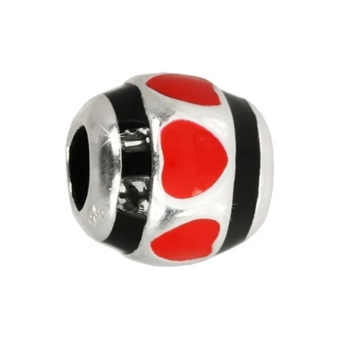 Ein Armband Modul – Emaille Kugel Herz rot – 925 Sterling Silber, original IMPPAC European Bead! Das Modul hat Gewinde innen.