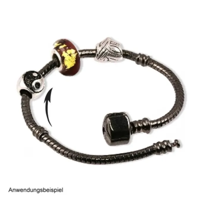 Ein Armband mit Clip Verschluss 21cm eloxiert. Passend zu original IMPPAC European Beads in 925 Sterling Silber und versilbert, zu anderen Marken und Herstellern! Das Armband hat Aussengewinde.