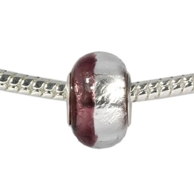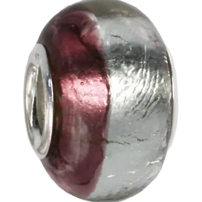Ein Glas Armband Modul – Violett/Silber – 925 Sterling Silber, original IMPPAC European Bead! Das Modul ist ein Spacer (Slidemodul) ohne Gewinde.