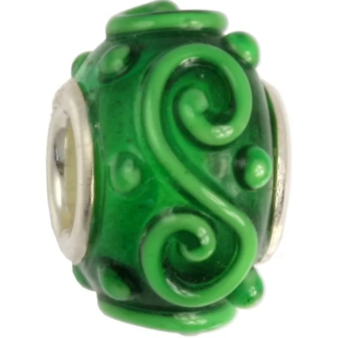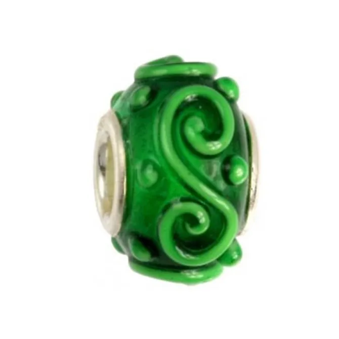Ein Armband Modul – Glas grüne Kringel – 925 Sterling Silber, original IMPPAC European Bead! Das Modul ist ein Spacer (Slidemodul) ohne Gewinde.