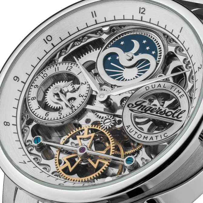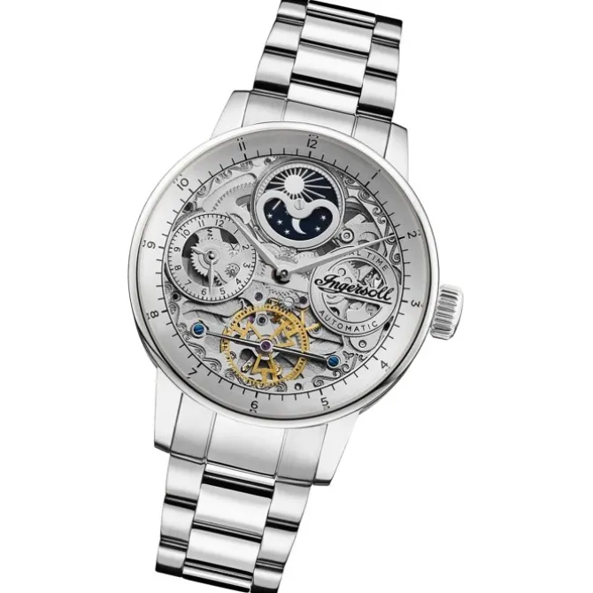 Die Ingersoll -The Jazz- Kollektion sind Herrenuhren mit Automatikwerk und bis 50 Meter wasserdicht. Ihr skellettiertes Ziffernblatt und das runde, glänzende Edelstahlgehäuse verleihen ihr zeitlose Eleganz.